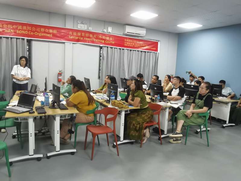 之后,常紡(緬甸)絲路學(xué)院首期服裝技能培訓(xùn)班在緬甸制衣協(xié)會服裝人才發(fā)展中心舉行開班儀式。緬甸制衣協(xié)會董事長Daw Aye Mi Shein,緬甸中國服裝協(xié)會會長施坤,深圳市博克時代科技開發(fā)有限公司代表,我校赴緬甸代表團以及緬甸參訓(xùn)學(xué)員參加了活動。本次培訓(xùn)共吸引十余家在緬中資服裝企業(yè)選派優(yōu)秀員工參加培訓(xùn)。我校服裝專業(yè)教師針對緬甸中資服裝企業(yè)的需求制定特色課程并開展教學(xué)。課程獲得了學(xué)員們廣泛歡迎和認(rèn)可。