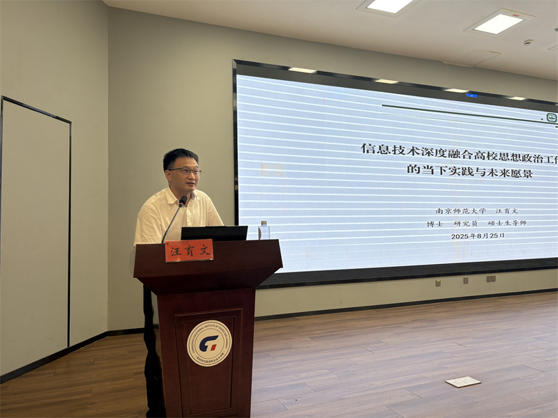 南京師范大學(xué)學(xué)生工作處副處長汪育文博士以《信息技術(shù)深度融合高校思想政治工作的當(dāng)下實踐與未來愿景》為題開展專題講座。他以“網(wǎng)絡(luò)育人關(guān)注什么?人工智能賦能什么?融合技術(shù)注意什么?”三問引題,聚焦高校思政與數(shù)字技術(shù)融合。講座中,汪育文結(jié)合南師大本土實踐與全國高校案例,生動展現(xiàn)了人工智能在高校思政領(lǐng)域的落地成果。從精準(zhǔn)化學(xué)生管理系統(tǒng)提升服務(wù)效率到依托數(shù)字技術(shù)打造智慧“五育”場景,一個個鮮活案例讓大家直觀感受到信息技術(shù)為高校思政工作注入的新活力。他還特別強(qiáng)調(diào)了技術(shù)應(yīng)用中的“平衡之道”:既要借助數(shù)據(jù)洞察精準(zhǔn)把握學(xué)生需求,又要嚴(yán)守隱私保護(hù)底線;既要精研技術(shù)手段優(yōu)化工作流程、激發(fā)育人效能,又要正視精準(zhǔn)決策背后可能存在的數(shù)據(jù)偏差;既要積極探索數(shù)字思政的新形式、新載體,又要回歸育人本質(zhì),審視工作成效,堅決杜絕形式主義,真正讓信息技術(shù)成為高校思政工作的“加速器”與“增效劑”。最后,汪育文鼓勵大家主動擁抱數(shù)字變革,積極探索創(chuàng)新,產(chǎn)出更多有溫度、有深度、有影響力的網(wǎng)絡(luò)文化產(chǎn)品,為高校思政工作高質(zhì)量發(fā)展注入新動能。