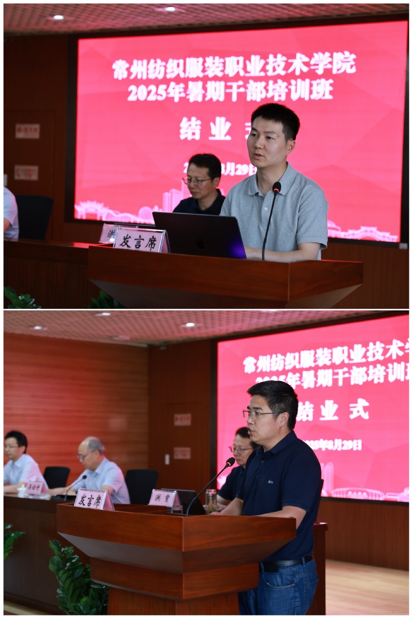 結(jié)業(yè)儀式上,兩位學(xué)員代表分別匯報(bào)了各自的學(xué)習(xí)體會(huì)及今后工作打算。學(xué)校黨委書(shū)記吳訪升進(jìn)行了總結(jié)講話,他充分肯定了本次干部培訓(xùn)取得的成果并就如何更好地轉(zhuǎn)化運(yùn)用培訓(xùn)成果,做好下一步工作,圍繞“破題”“破局”“破發(fā)”三個(gè)關(guān)鍵詞進(jìn)行闡釋。他指出,本次培訓(xùn)是一次理論武裝的再?gòu)?qiáng)化,是一次能力本領(lǐng)的再提升,是一次工作交流的再促進(jìn)。他要求,全體干部要把學(xué)習(xí)成果轉(zhuǎn)化為推動(dòng)工作的實(shí)際成效,以更加飽滿的熱情、更加昂揚(yáng)的斗志、更加務(wù)實(shí)的作風(fēng),持續(xù)推進(jìn)“兩化兩型”高水平高職學(xué)校建設(shè),持續(xù)打造特色鮮明、走在前列的中國(guó)紡織服裝高職強(qiáng)校!