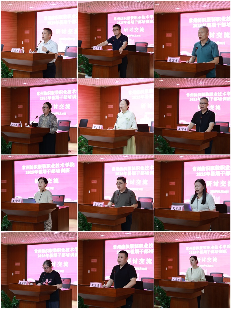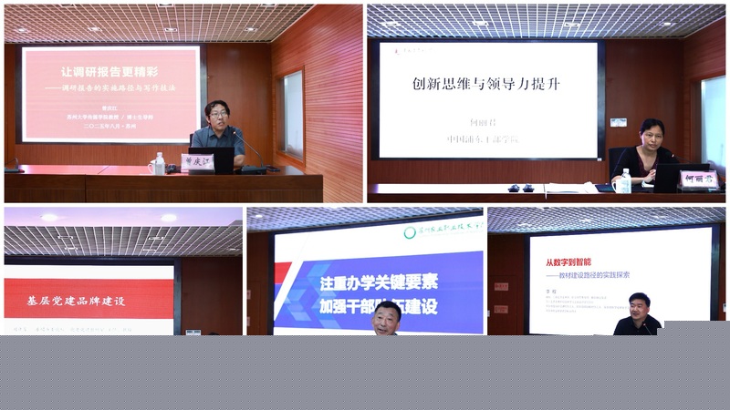 本次培訓(xùn),課程設(shè)計(jì)緊密結(jié)合學(xué)校工作實(shí)際,立足干部素質(zhì)能力需求,以推動(dòng)學(xué)校事業(yè)高質(zhì)量發(fā)展為目標(biāo),以干部履職能力和專業(yè)素養(yǎng)培訓(xùn)為重點(diǎn),以理論授課、現(xiàn)場(chǎng)教學(xué)和研討交流為主要形式,力求通過(guò)系統(tǒng)性、針對(duì)性的課程進(jìn)行全方位的培訓(xùn),進(jìn)一步強(qiáng)化提升干部的政治能力、調(diào)查研究能力、科學(xué)決策能力、改革攻堅(jiān)能力、應(yīng)急處突能力、群眾工作能力和抓落實(shí)能力,為學(xué)校事業(yè)發(fā)展提供堅(jiān)強(qiáng)組織保證。授課過(guò)程中,授課專家圍繞調(diào)研方法與調(diào)研報(bào)告撰寫(xiě)、創(chuàng)新思維與領(lǐng)導(dǎo)力提升、基層黨建工作品牌建設(shè)、辦學(xué)關(guān)鍵要素與干部隊(duì)伍建設(shè)、教材建設(shè)等主題做了專題輔導(dǎo)報(bào)告。研討交流環(huán)節(jié),參訓(xùn)學(xué)員結(jié)合輔導(dǎo)報(bào)告內(nèi)容并立足各自工作實(shí)際進(jìn)行交流發(fā)言,暢談所學(xué)所思所悟,為學(xué)校的建設(shè)發(fā)展建言獻(xiàn)策。培訓(xùn)期間,全體參訓(xùn)學(xué)員還前往江蘇恒力化纖股份有限公司、蘇州上久楷絲綢科技文化有限公司、蘇州工藝美術(shù)職業(yè)技術(shù)學(xué)院等行業(yè)企業(yè)和兄弟院校開(kāi)展學(xué)習(xí)調(diào)研。