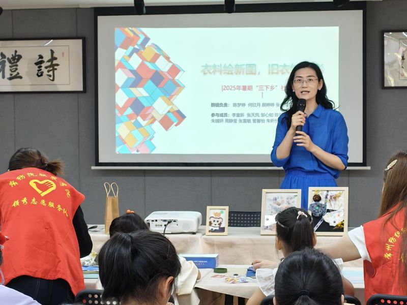 為弘揚(yáng)中華美育精神,宣傳可持續(xù)發(fā)展理念,常州紡織服裝職業(yè)技術(shù)學(xué)院“衣料繪新圖,舊衣綻新彩”實(shí)踐團(tuán)在暑期組織開展——“藝潤(rùn)童心,共織未來(lái)”社區(qū)生活資源循環(huán)利用實(shí)踐活動(dòng)。該社會(huì)實(shí)踐團(tuán)以2025年榮獲的常州市文明實(shí)踐優(yōu)秀項(xiàng)目、市社區(qū)教育特色建設(shè)項(xiàng)目為依托,通過(guò)藝術(shù)與環(huán)保融合的方式,積極助力社區(qū)文明實(shí)踐建設(shè)。