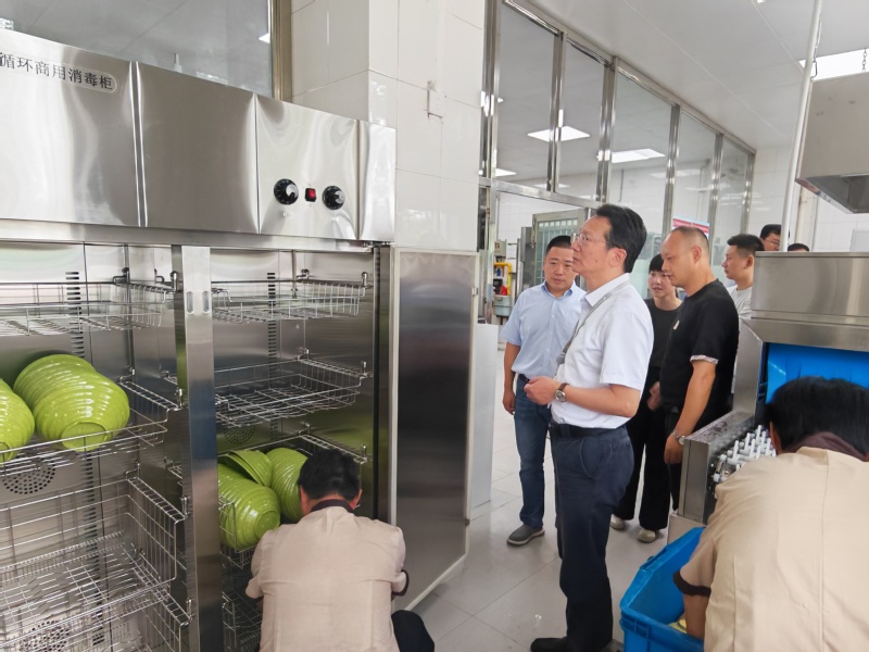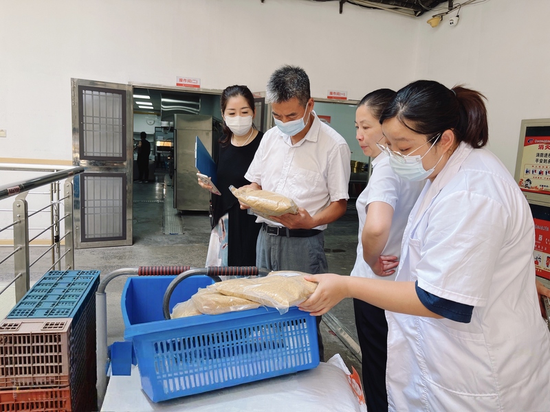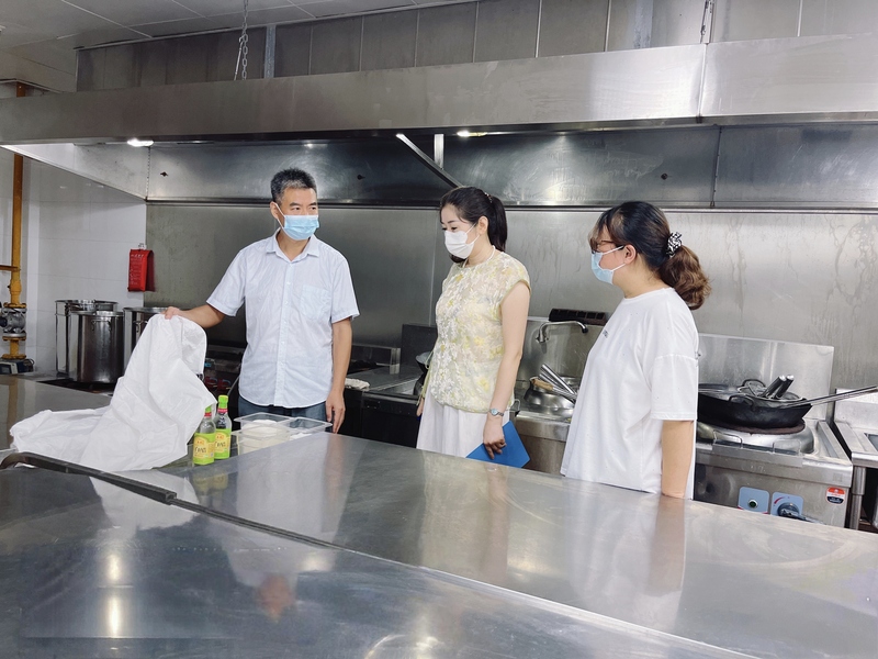 學校黨委副書記、校長洪霄,黨委委員、副校長張文明,黨委委員、宣傳部部長夏斌深入食堂一線,查看各餐廳開餐準備工作,黨政辦、后勤部、學生處等相關人員陪同。大家走進大廳重點查看了食品售賣價格、就餐環(huán)境準備、服務人員配備、信息公示等情況;走進后場,重點圍繞食品安全,查看了食品原料加工管理,針對避免食品交叉污染發(fā)生,清洗、切配、烹飪等環(huán)節(jié)需遵循生熟分開的原則,詢問了工作人員;查看了新配備的廚房設備、清洗消毒設施,請工作人員現(xiàn)場演示了規(guī)范操作流程,講解了使用維護方法;詢問了工作人員食品安全規(guī)范知識,對食堂從業(yè)人員的個人衛(wèi)生管理、食品留樣制度的規(guī)范執(zhí)行等內容提出進一步要求,明確了每個環(huán)節(jié)的責任要點。在原材料儲存區(qū)域,檢查組仔細檢查了各類食材的進貨臺賬、索證索票情況,查看食品原材料是否在保質期內,儲存條件是否符合要求。