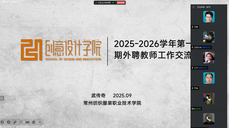 9月4日,創(chuàng)意設(shè)計(jì)學(xué)院在線上組織召開了2025-2026學(xué)年第一學(xué)期外聘教師教學(xué)工作研討會(huì)。會(huì)議旨在進(jìn)一步加強(qiáng)外聘教師隊(duì)伍建設(shè),規(guī)范教學(xué)管理,提升教學(xué)質(zhì)量,確保新學(xué)期教學(xué)工作有序開展。會(huì)議由創(chuàng)意設(shè)計(jì)學(xué)院副院長武傳奇主持,院教學(xué)督導(dǎo)賀丹、教學(xué)秘書王良惠、全體教研室主任及外聘教師參會(huì)。