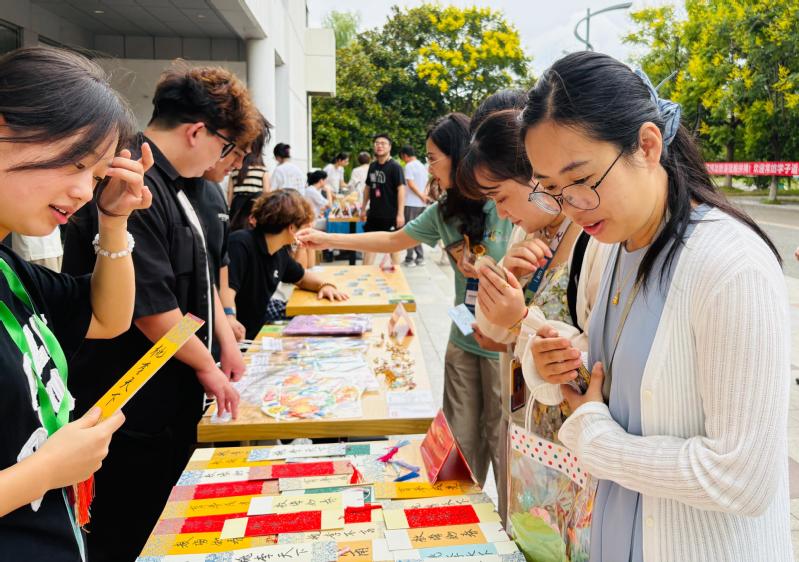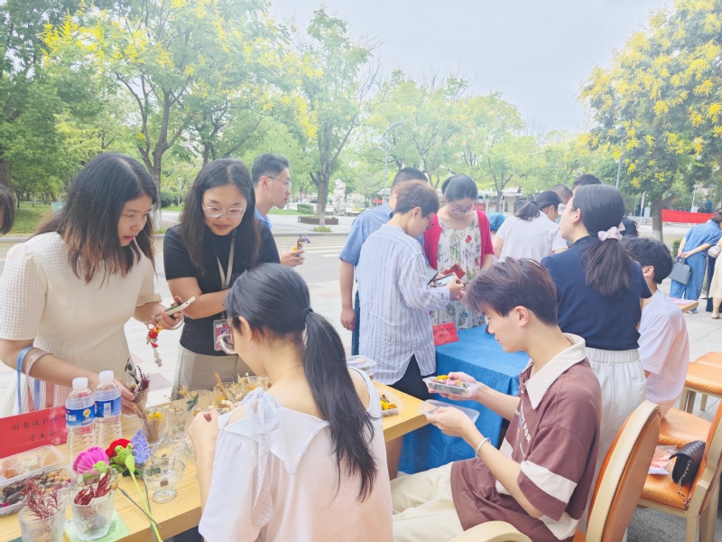 校團委、校學生會以“師情永駐·暖心相伴”為理念,定制了印有“教師節(jié)快樂”“老師您辛苦了”“師恩難忘”等字樣的冰箱貼,以簡潔溫馨的設(shè)計傳遞祝福,感謝老師們無私的奉獻和辛勞。創(chuàng)意設(shè)計學院團委、學生會提前準備了100份水晶香薰,并在活動現(xiàn)場設(shè)有私人定制區(qū),讓老師根據(jù)喜好定制,收獲專屬感動。當一份份禮物傳遞到老師手中,那抹芬芳也好似在訴說著感恩。智能紡織與材料學院團委、學生會聯(lián)合織韻染藝社,推出“非遺扎染寄師恩”活動,裁布、扎花、豆染、固色、裝框,用心用情打造獨版藍白相框,將非遺技藝與感恩教育深度融合,讓傳統(tǒng)文化在校園中煥發(fā)新生。服裝與時尚設(shè)計學院團委、學生會策劃了“師恩如歌,歲月情長”活動,以艾草錘傳遞健康關(guān)懷,用鉆石畫閃耀師恩光芒,借干花框定格暖心情誼。這些禮物雖不昂貴,卻蘊含著對老師最誠摯的敬意與感恩。智能制造學院團委、學生會設(shè)計了雙主題冰箱貼,“校園記憶·風景印記”系列選取學校標志性場景進行文創(chuàng)校韻傳承,“非遺瑰寶·文化傳承”系列借鑒苗族銀飾紋樣融合工藝之美,來表達對老師們的感謝之情、祝福之意。數(shù)字商貿(mào)學院團委、學生會給老師們贈送了螺鈿飾品和花束賀卡,以這份獨具意義的禮物,給老師們留下一個深刻而溫暖的節(jié)日記憶。螺鈿所蘊含的匠心精神,恰如老師們在日常教學中以悉心培育桃李的執(zhí)著與專注。人文與健康學院團委、學生會的“書簽傳情,敬頌師恩”活動,制作了300份蠟染書簽,手寫暖心祝福,飽含著學生的心意,承載著對師者的感恩之情,搭建起師生間情感溝通的橋梁,讓敬意與溫暖在校園中傳遞。