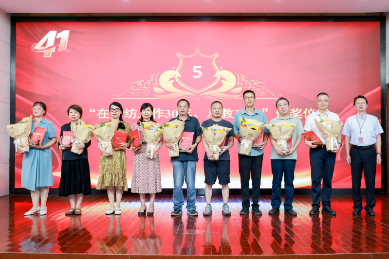 黨委副書記、校長洪霄為“在常紡工作30年、從教30年”教職工頒獎