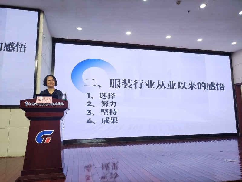 特邀校關(guān)工委委員、學(xué)院黨總支原書記潘荷新與新生話成長,他以學(xué)校的發(fā)展歷程為引,帶領(lǐng)新生們穿越時光,生動再現(xiàn)了學(xué)校自1958年從常州紡織工業(yè)??茖W(xué)校的初創(chuàng),到全國重點中專,再到2001年升格為高職院校以及到成為省雙高計劃建設(shè)單位以來篳路藍(lán)縷的創(chuàng)業(yè)歷程、砥礪前行的發(fā)展足跡和碩果累累的輝煌成就。他深情地講述著學(xué)校在曲折中前行,在改革中騰飛的故事,讓新生進(jìn)一步增強了對學(xué)校的歸屬感、認(rèn)同感和自豪感。學(xué)院特邀江蘇圣瀾服飾創(chuàng)意有限公司董事長、“同桌的你”品牌創(chuàng)始人王秋芬女士開展分享會。她結(jié)合自身創(chuàng)業(yè)經(jīng)歷,深入分析行業(yè)趨勢與發(fā)展機遇,鼓勵新生培養(yǎng)創(chuàng)新思維和市場意識,為未來職業(yè)發(fā)展與自主創(chuàng)業(yè)積累經(jīng)驗。