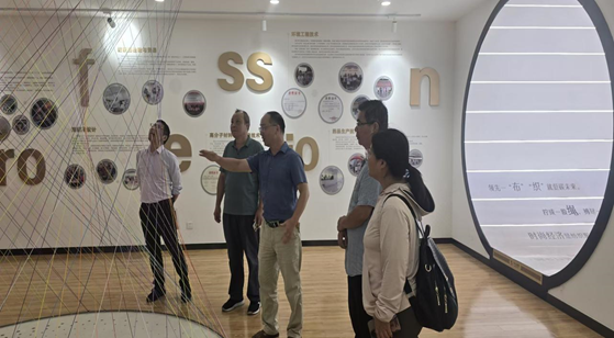在紡織科技館,九三學(xué)社的專家們依次參觀了三大核心展區(qū):在紡織歷史與文化展區(qū),重點了解了常州本地的亂針繡、蠟染等非遺技藝及其在現(xiàn)代設(shè)計中的傳承與創(chuàng)新;在現(xiàn)代紡織技術(shù)展區(qū),現(xiàn)場觀摩了自動化絡(luò)筒機、數(shù)碼印花機等智能設(shè)備的運行,并深入了解了功能性與環(huán)保型紡織材料的最新應(yīng)用;在校企協(xié)同育人展區(qū),瀏覽了我校與行業(yè)龍頭企業(yè)合作的實訓(xùn)成果,以及學(xué)生將非遺元素與現(xiàn)代科技結(jié)合的創(chuàng)新創(chuàng)業(yè)作品,如智能溫控服飾、文創(chuàng)家紡等。