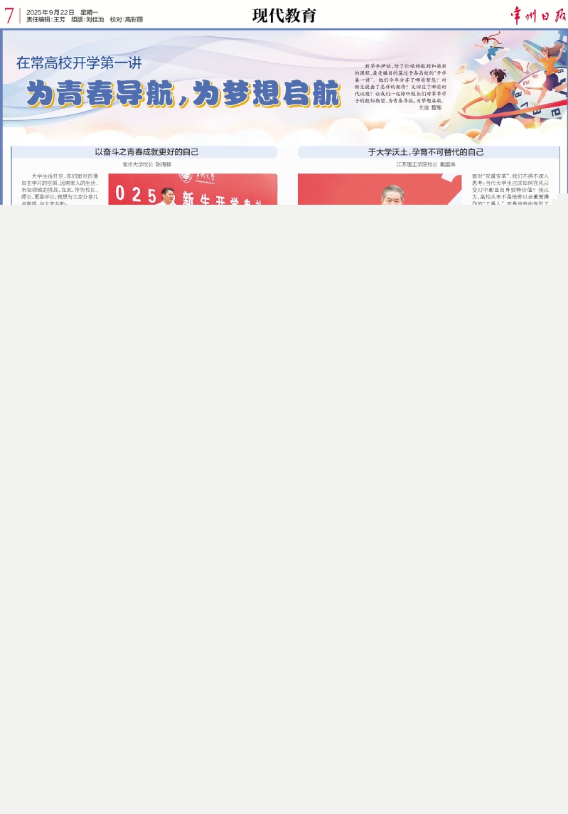 9月22日 常州日報(bào)·現(xiàn)代教育7版在常高校開學(xué)第一講為青春導(dǎo)航,為夢想啟航鏈接:https://mp.weixin.qq.com/s/o5-m5kBn01Iova_s_z5CYg