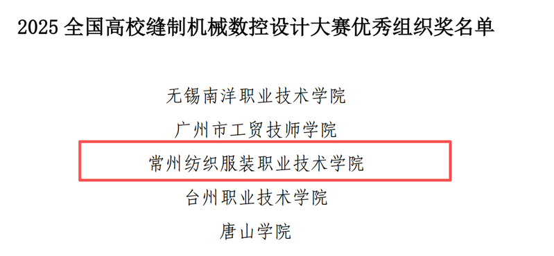 我校學(xué)生在各賽道表現(xiàn)出較高專業(yè)水平,贏得了評委們的高度認(rèn)可,充分展現(xiàn)了作為全國紡織服裝特色強(qiáng)校的深厚辦學(xué)底蘊(yùn),三大賽道共獲得一等獎6項(xiàng)、二等獎3項(xiàng)、三等獎9項(xiàng),成績位居所有參賽院校前列。6名選手脫穎而出,成功入圍CISMA2025上??倹Q賽的巔峰舞臺,在決賽中他們繼續(xù)努力拼搏為校爭光,與本科組同學(xué)同臺競技,展現(xiàn)出良好的競賽風(fēng)貌。最終,在工業(yè)用縫紉機(jī)數(shù)控編程大賽決賽中斬獲全國亞軍。此外,在賽后表彰大會中我校榮獲大賽優(yōu)秀組織獎。