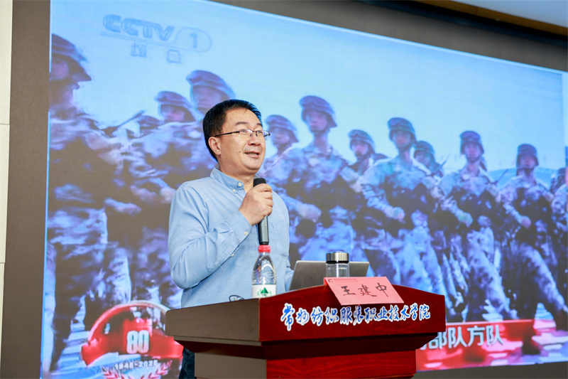 作為深耕軍事教育領域34年的專家,王建中教授兼具軍校教學與戰(zhàn)區(qū)參謀的雙重經(jīng)驗,他以“9?3閱兵式”這一極具歷史意義的場景為鮮活教材,從“裝備實力、國防智慧、育人使命”三個維度展開深度解讀,既為新生勾勒大國軍工的發(fā)展圖景,也為輔導員提供了國防教育的實踐思路。?