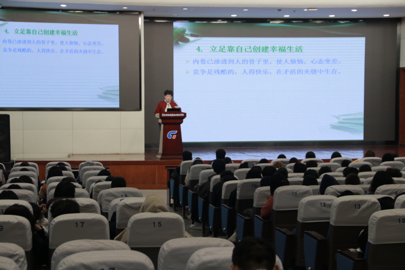 針對新生初入大學(xué)可能面臨的“心靈孤島”困境——學(xué)習(xí)生活不適應(yīng)、班級宿舍融不進、人際關(guān)系處理難等問題,韓老師直擊痛點,給出了“工具化”的心態(tài)調(diào)整方案。她提出善用8個工具塑造陽光心態(tài),如改變對事情的態(tài)度、享受過程而非結(jié)果、活在當(dāng)下專注眼前、靠自己創(chuàng)建幸福生活、常懷感恩之心、遇到挫折時多看積極面、以心態(tài)塑造處境、壓力大時學(xué)會“彎曲”變通,并用生動的小故事解讀每個工具的核心邏輯,讓抽象的“心態(tài)調(diào)整”變得可操作。