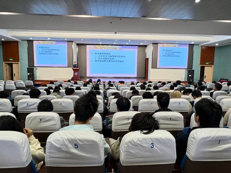 講座中,孫老師通過案例,用三角函數(shù)、拋物線及數(shù)學公式向師生生動闡釋了數(shù)學的極限思維、形式美與邏輯和諧之美。他強調(diào),數(shù)學素養(yǎng)的培養(yǎng),其價值不僅在于激發(fā)學生對數(shù)學的熱愛與審美情趣,更關鍵的是引導他們將高等數(shù)學課程中所錘煉的核心能力——如嚴謹?shù)倪壿嬎季S、抽象的空間想象力、細致的觀察能力等有效遷移應用到其他專業(yè)學科的學習之中。這些能力,是學生應對各復雜領域的通用思維工具。同時,數(shù)學提供的顯性直接工具,例如精密計算與求解問題的方法,對于計算機、會計、電子商務等需要量化處理專業(yè)的同學而言,是必不可少的技能支撐。