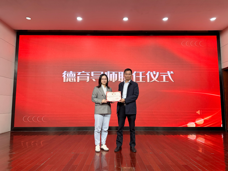 隨后,進(jìn)行了德育導(dǎo)師聘任儀式,陸青萍代表智能制造學(xué)院黨總支和學(xué)院關(guān)工委向廖仲賓頒發(fā)德育導(dǎo)師聘書。