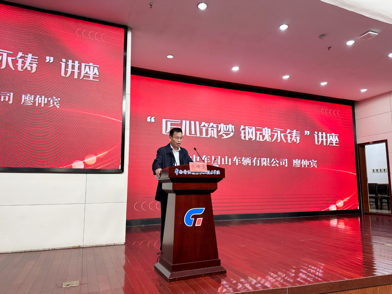 開班儀式后,中車眉山車輛有限公司特級技師廖仲賓圍繞“匠心筑夢鋼魂永鑄”這一主題作專題講座,他從“學(xué)習(xí)無止境、創(chuàng)新無止境、奉獻(xiàn)無止境、教誨無止境”等四個方面,詮釋了中國工人的夢想、光亮、本色、風(fēng)采和自身的心路歷程,勉勵同學(xué)們要珍惜時間、深耕專業(yè),像打磨精密零件般錘煉本領(lǐng)——課堂上吃透理論原理,實(shí)驗(yàn)室里鉆研參數(shù)細(xì)節(jié),車間中體悟工藝邏輯,把個人成長融入制造強(qiáng)國的鋼鐵洪流,讓青春在爐火淬煉中綻放光彩!