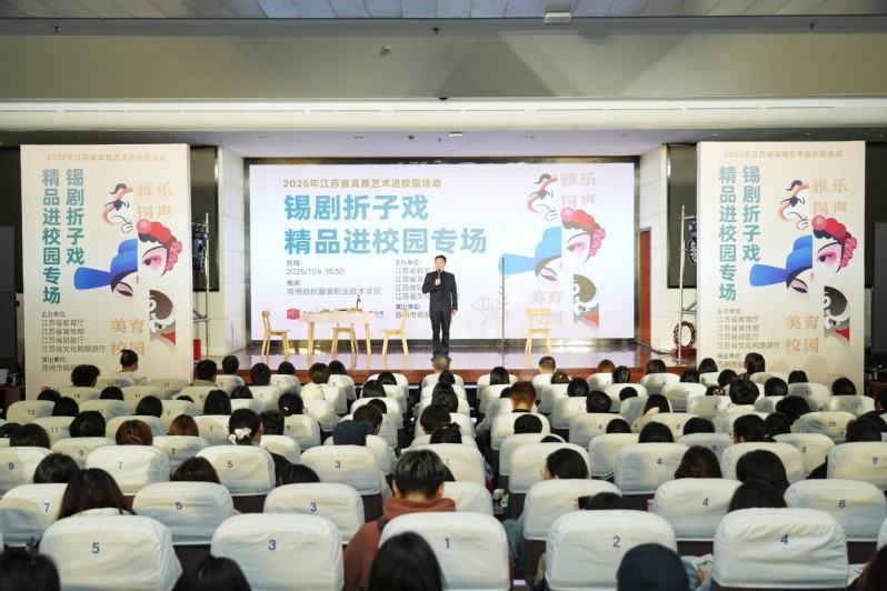 11月4日,由江蘇省教育廳、省委宣傳部、省財(cái)政廳、省文旅廳共同主辦,我校協(xié)辦的2025年“高雅藝術(shù)進(jìn)校園”錫劇折子戲?qū)鲈谛?wù)中心圖文報(bào)告廳精彩上演。蘇州市錫劇團(tuán)為師生帶來一場藝術(shù)盛宴,現(xiàn)場氣氛熱烈,掌聲不斷。黨委委員、宣傳部部長夏斌,校團(tuán)委書記朱鵬和500余師生共同參加活動。