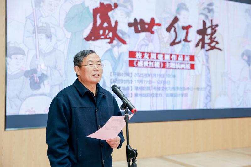 在創(chuàng)作分享環(huán)節(jié),周建剛深情回顧了在母校的求學(xué)經(jīng)歷與藝術(shù)探索之路。他特別表達(dá)了對(duì)昔日師長(zhǎng)宋躍良、喬京祿及同窗朱世剛等到場(chǎng)校友的感激之情,并談到,《盛世紅樓》系列插畫(huà)的創(chuàng)作源于對(duì)傳統(tǒng)文化與母校培育的感恩,希望通過(guò)作品連綴起常州與紅樓、母校與學(xué)子之間深沉的文化緣分。