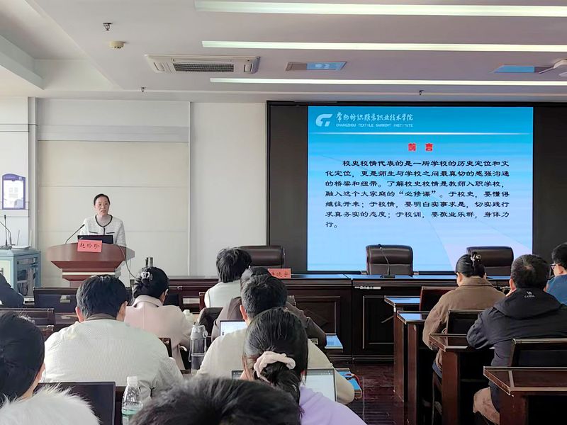 培訓(xùn)中,趙玲珍作了《根脈追溯?薪火相傳?征程漫越—常州紡院新入職教師校史校情教育》為題的專題講座。她結(jié)合校史校情與自己的工作經(jīng)歷,通過校史校情的回溯,寄語青年教師,深化對(duì)學(xué)校的認(rèn)同感、歸屬感、榮譽(yù)感,以立德樹人為職業(yè)追求,將個(gè)人理想融入學(xué)校與國家發(fā)展偉業(yè),傳承常紡精神,凝心聚力,為建設(shè)高水平高等職業(yè)院校和培養(yǎng)具有常紡精神的高素質(zhì)技能人才作出貢獻(xiàn)。