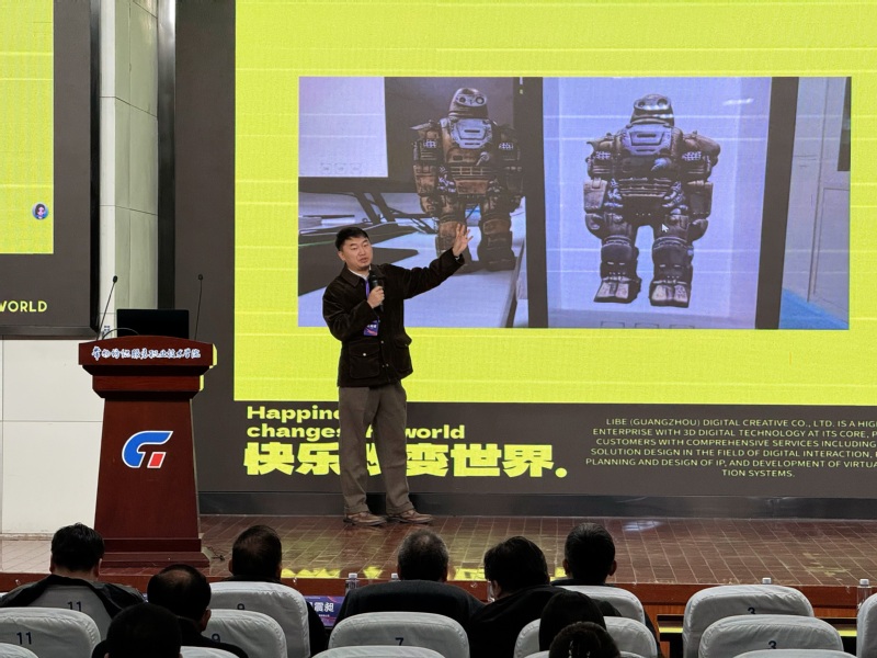 隨后,會(huì)議進(jìn)入主題報(bào)告環(huán)節(jié),由共同體秘書長顧明智主持。力貝(廣州)數(shù)字創(chuàng)意科技股份有限公司總經(jīng)理呼野以“IP潮流+AIGC賦能非遺文創(chuàng)產(chǎn)教融合”為題,探討了科技與文化融合的創(chuàng)新路徑;中山職業(yè)技術(shù)學(xué)院藝術(shù)設(shè)計(jì)學(xué)院院長譚吉武教授則圍繞“破壁·賦能:產(chǎn)教融合新生態(tài)的人才培養(yǎng)模式創(chuàng)新實(shí)踐”,分享了院校在育人機(jī)制方面的探索與成效。