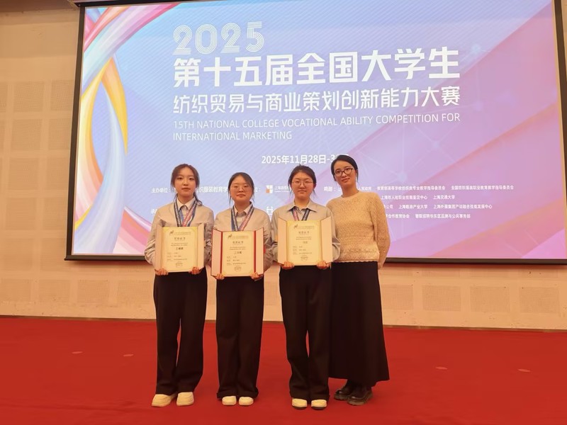 我校智能紡織與材料學(xué)院紡織品檢驗(yàn)與貿(mào)易專(zhuān)業(yè)李真顏、王升慧、張?jiān)姺f三位同學(xué)(指導(dǎo)團(tuán)隊(duì):冒海文、楊靜芳、邵東鋒等)表現(xiàn)卓越。賽場(chǎng)上,三位選手沉著自信,在綜合理論與實(shí)務(wù)操作、商業(yè)策劃創(chuàng)新能力展示兩大模塊的角逐中,交出了亮眼答卷,獲得評(píng)委一致好評(píng)。最終,斬獲一等獎(jiǎng)1項(xiàng)、二等獎(jiǎng)1項(xiàng)、三等獎(jiǎng)1項(xiàng),盡顯紡院學(xué)子扎實(shí)專(zhuān)業(yè)功底與勇于創(chuàng)新風(fēng)貌。成績(jī)?nèi)〉玫谋澈?,是學(xué)院的高度重視與全方位支持,從場(chǎng)地安排、設(shè)備保障到后勤服務(wù),為參賽團(tuán)隊(duì)筑牢后盾;是指導(dǎo)團(tuán)隊(duì)老師的全力以赴,圍繞貿(mào)易實(shí)務(wù)、商業(yè)策劃兩個(gè)模塊,反復(fù)練習(xí),精益求精。