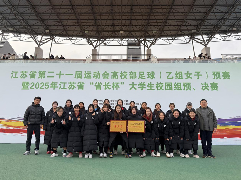 11月27日至12月2日,由江蘇省教育廳、江蘇省體育局聯(lián)合主辦的江蘇省第二十一屆運動會高校部足球(乙組)預選賽暨2025年江蘇省“省長杯”大學生高職女子組預決賽在江蘇護理職業(yè)技術學院順利舉行。由體育部陸爽老師帶隊指導的我校女子足球隊獲得第三名,并成功晉級2026年省運會高校部足球(乙組)決賽。