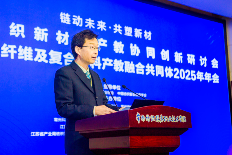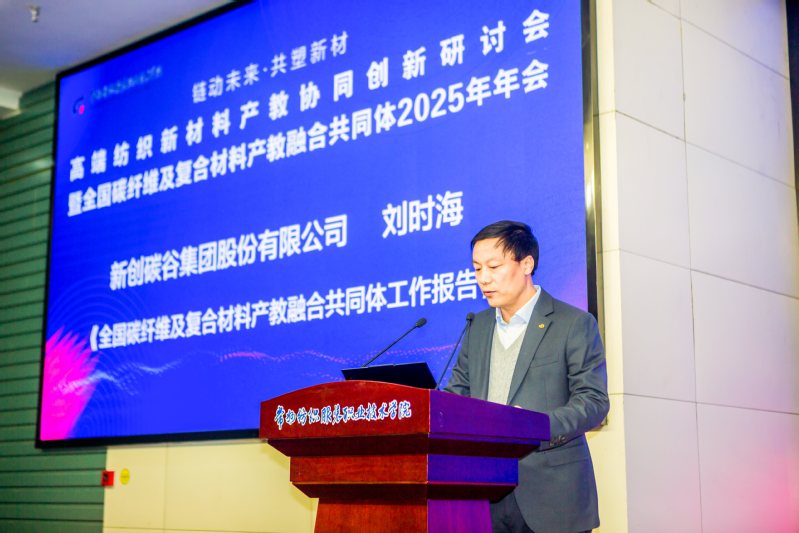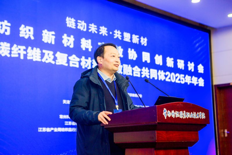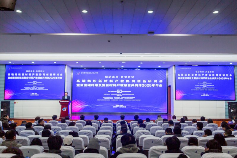 2025年12月25日,高端紡織新材料產(chǎn)教協(xié)同創(chuàng)新研討會(huì)暨全國碳纖維及復(fù)合材料產(chǎn)教融合共同體2025年年會(huì)在我校隆重召開。本次會(huì)議匯聚政府部門、行業(yè)協(xié)會(huì)、產(chǎn)業(yè)鏈企業(yè)、院校及科研機(jī)構(gòu)代表80余人,聚焦高端紡織新材料、碳纖維及復(fù)合材料產(chǎn)業(yè)應(yīng)用場(chǎng)景,共同探討“產(chǎn)業(yè)需求牽引、院校精準(zhǔn)培養(yǎng)、企業(yè)全程參與、研發(fā)同步推進(jìn)”的協(xié)同機(jī)制,推動(dòng)形成人才供給與產(chǎn)業(yè)需求高度匹配、技術(shù)創(chuàng)新與教學(xué)改革深度融合的產(chǎn)教融合新格局。本次會(huì)議由中國產(chǎn)業(yè)用紡織品行業(yè)協(xié)會(huì)、中國紡織服裝教育學(xué)會(huì)指導(dǎo),天津工業(yè)大學(xué)、新創(chuàng)碳谷集團(tuán)有限公司、常州紡織服裝職業(yè)技術(shù)學(xué)院共同主辦。