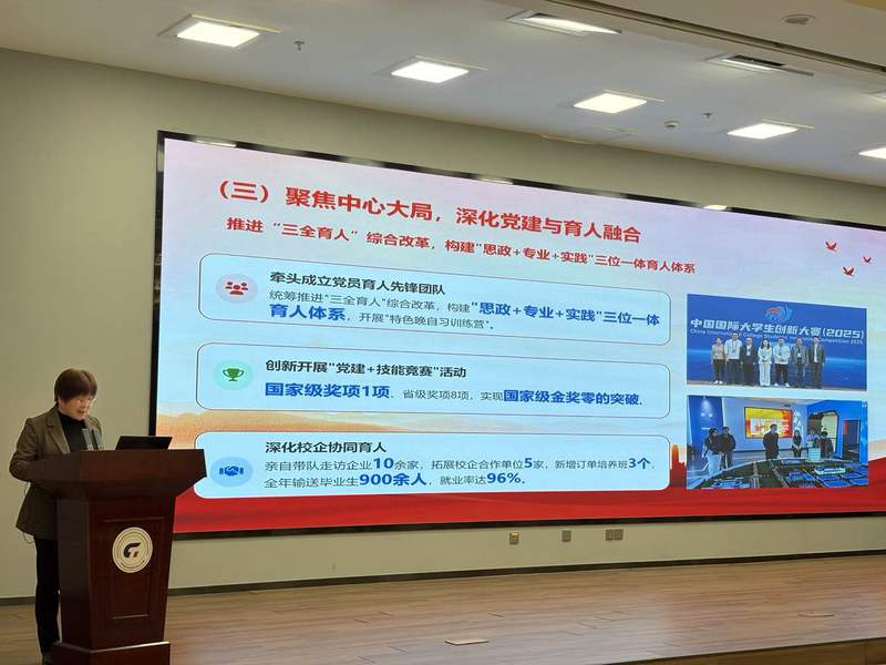為深入學習貫徹習近平新時代中國特色社會主義思想、黨的二十大和二十屆四中全會精神,壓緊壓實全面從嚴治黨政治責任,全面檢驗二級黨組織書記履職成效。12月29日下午,黨委召開2025年度二級黨組織書記抓黨建述職述廉述意識形態(tài)評議會。黨委班子成員、相關職能部門負責人、二級黨組織書記、副書記,以及“兩代表一委員”、基層黨員代表等參加會議。黨委委員、黨委組織部(統(tǒng)戰(zhàn)部)部長高江榮主持會議。