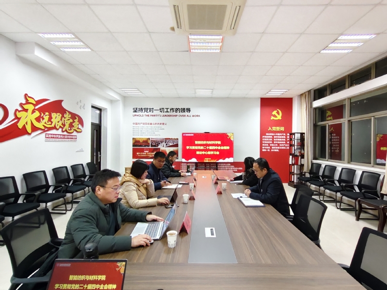 為深入學(xué)習(xí)貫徹黨的二十屆四中全會精神,切實(shí)把思想和行動統(tǒng)一到黨中央決策部署上來,智能紡織與材料學(xué)院黨總支近日召開了理論學(xué)習(xí)中心組學(xué)習(xí)會。校黨委委員、副院長馬昀出席會議并講話,學(xué)院黨總支委員參加了會議。會議由黨總支書記侯喜軍主持。