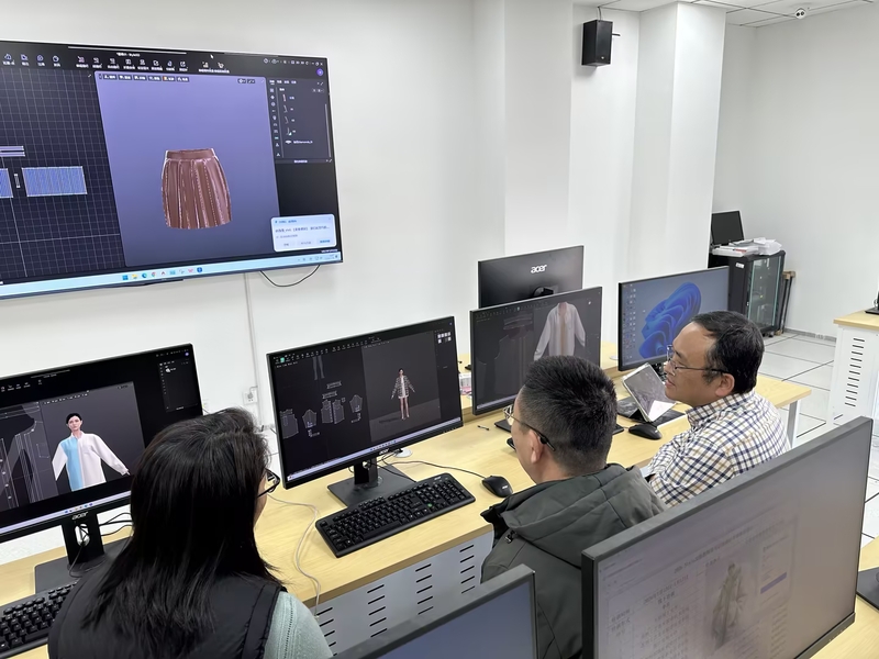 本次培訓(xùn)分為兩個(gè)階段。第一階段為博克CAD智能化制版實(shí)操培訓(xùn)(1月5-9日),該培訓(xùn)以智能化、參數(shù)化打版、推版和排料為核心,服裝設(shè)計(jì)、服裝工程教研室老師和時(shí)尚工程師班學(xué)員在企業(yè)講師的指導(dǎo)下,從軟件基礎(chǔ)操作逐步過渡到復(fù)雜款式的數(shù)字化版型開發(fā)、自動(dòng)推檔與排料優(yōu)化等實(shí)戰(zhàn)模塊。通過貼近企業(yè)實(shí)際需求的實(shí)訓(xùn)任務(wù),教師們不僅掌握了軟件操作技能,也深入理解了數(shù)字化流程如何顯著提升版型設(shè)計(jì)的精準(zhǔn)度與效率。同時(shí),大家還圍繞CAD數(shù)據(jù)與工藝課程銜接、教學(xué)案例庫(kù)建設(shè)等議題開展研討。第二階段為Style3D虛擬設(shè)計(jì)與AI專項(xiàng)培訓(xùn)(1月13-17日),該培訓(xùn)聚焦Style3D虛擬試衣軟件及其AI應(yīng)用,涵蓋AI智能創(chuàng)意設(shè)計(jì)、三維建模、數(shù)字面料仿真、虛擬試衣調(diào)整與場(chǎng)景渲染等內(nèi)容。教師們通過從二維版片到三維成衣的全流程實(shí)踐,親身體驗(yàn)了AI技術(shù)在縮短設(shè)計(jì)周期、降低打樣成本、增強(qiáng)設(shè)計(jì)表現(xiàn)力方面的顯著優(yōu)勢(shì),培訓(xùn)過程中也引發(fā)了教師對(duì)設(shè)計(jì)思維轉(zhuǎn)型、課程體系重構(gòu)及跨課程項(xiàng)目設(shè)計(jì)的深度思考。