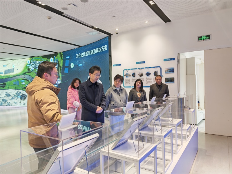 王順明一行在企業(yè)負(fù)責(zé)人的陪同下,首先參觀了天合光能展廳。通過實(shí)地觀摩與詳細(xì)講解,團(tuán)隊(duì)深入了解了公司在光伏產(chǎn)業(yè)的發(fā)展歷程、核心技術(shù)研發(fā)成果、智能生產(chǎn)線應(yīng)用場景及全球市場布局,對新能源領(lǐng)域的前沿動態(tài)與產(chǎn)業(yè)發(fā)展趨勢有了更為直觀且深刻的認(rèn)識,為后續(xù)校企合作找準(zhǔn)切入點(diǎn)奠定了基礎(chǔ)。
