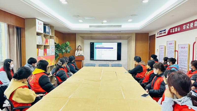 培訓(xùn)圍繞門診須知、科室分布、就診流程、服務(wù)規(guī)范四個模塊展開。志愿者重點學(xué)習(xí)了14個門診科室職能及常見病癥與科室對應(yīng)關(guān)系,通過典型案例分析,進一步夯實分診基礎(chǔ)。同時,培訓(xùn)對自助機支付、“加號”處理、既往醫(yī)囑確認(rèn)等就診流程進行了規(guī)范講解,并強化了標(biāo)準(zhǔn)化問詢話術(shù)應(yīng)用,提升志愿者風(fēng)險識別與服務(wù)能力。培訓(xùn)現(xiàn)場,志愿者認(rèn)真聆聽、詳細(xì)記錄,進一步認(rèn)識到規(guī)范服務(wù)對提升就醫(yī)體驗的重要意義。