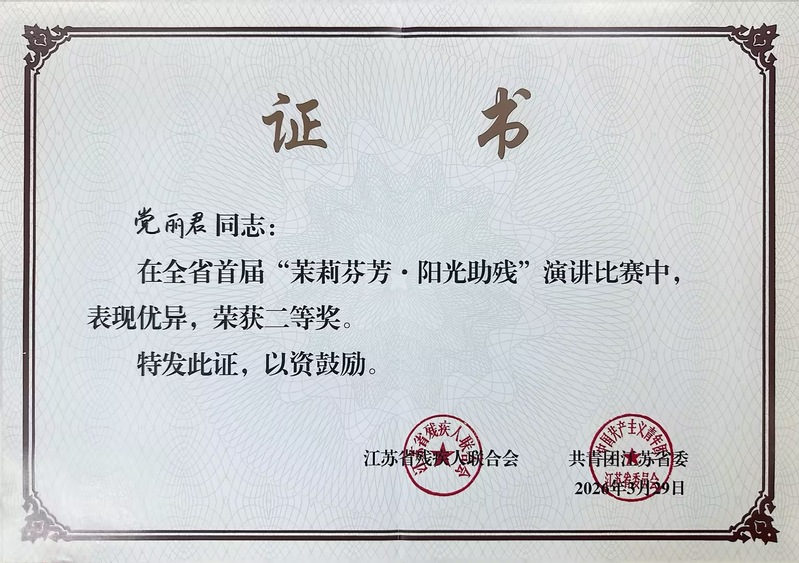 全省首屆“茉莉芬芳·陽光助殘”演講比賽二等獎