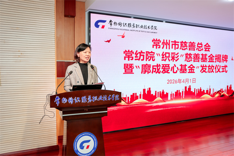 張雪華在致辭中對常州市慈善總會、廓成愛心基金及愛心企業(yè)的無私奉獻致以崇高敬意,她介紹了學(xué)?!敖饫А恕刹拧仞仭钡馁Y助工作理念。她指出,常紡院“織彩”慈善基金的設(shè)立是慈善與教育的深度融合,也是學(xué)校落實立德樹人根本任務(wù)、助力學(xué)子成長的重要舉措。