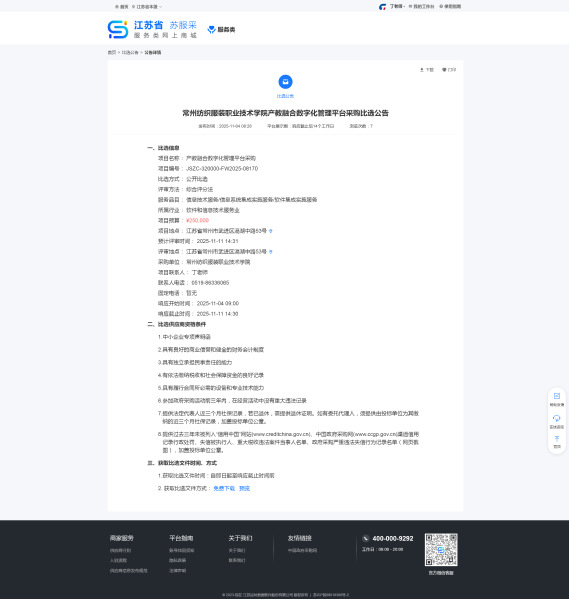采購編號:服裝學(xué)院-2025-11服裝與時(shí)尚設(shè)計(jì)學(xué)院對服裝流行趨勢網(wǎng)站服務(wù)項(xiàng)目采用詢價(jià)方式進(jìn)行采購,現(xiàn)請符合條件的供應(yīng)商參加投標(biāo),有關(guān)事項(xiàng)公告如下:一、采購內(nèi)容服裝流行趨勢網(wǎng)站服務(wù)采購項(xiàng)目本項(xiàng)目的設(shè)定最高限價(jià)為:人民幣29000元(大寫:貳萬玖仟元)二、成交原則:在符合采購需求、質(zhì)量和服務(wù)相等且報(bào)價(jià)未超過采購預(yù)算的前提下,以提出最低報(bào)價(jià)的響應(yīng)單位為成交供應(yīng)商。若最低報(bào)價(jià)相同,則按免費(fèi)服務(wù)年限長優(yōu)先的順序排列選擇成交供應(yīng)商。三、對投標(biāo)單位的基本要求:1、應(yīng)當(dāng)符合《中華人民共和國政府采購法》第二十二條的相關(guān)規(guī)定;2、具有獨(dú)立承擔(dān)民事責(zé)任的能力;3、具有良好的商業(yè)信譽(yù)和健全的財(cái)務(wù)會計(jì)制度;4、具有履